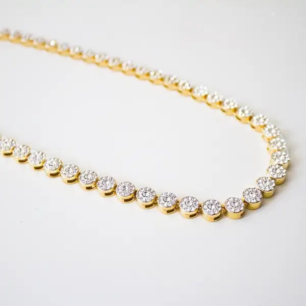 The Iced Sunflower Chain and Bracelet is the perfect accessory to any outfit, casual or business, this piece will turn heads in just the right way.