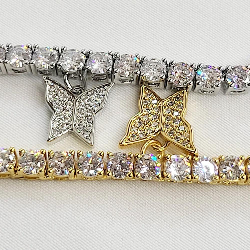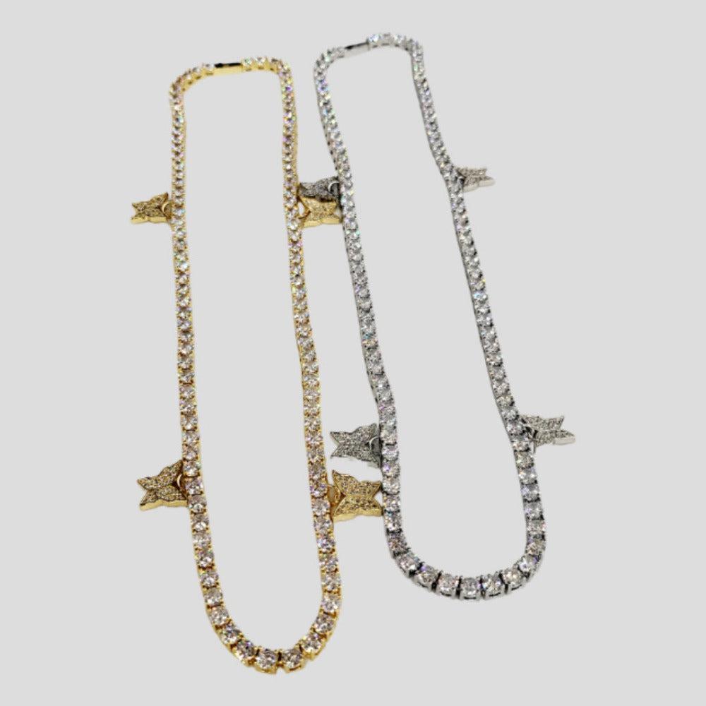 The perfect icy Tennis Necklace is here! The 4mm Premium Tennis Necklace has butterflies perfectly placed to dance like fire! This chain will have you looking like you're at the top of the charts! This piece goes perfectly with any outfit