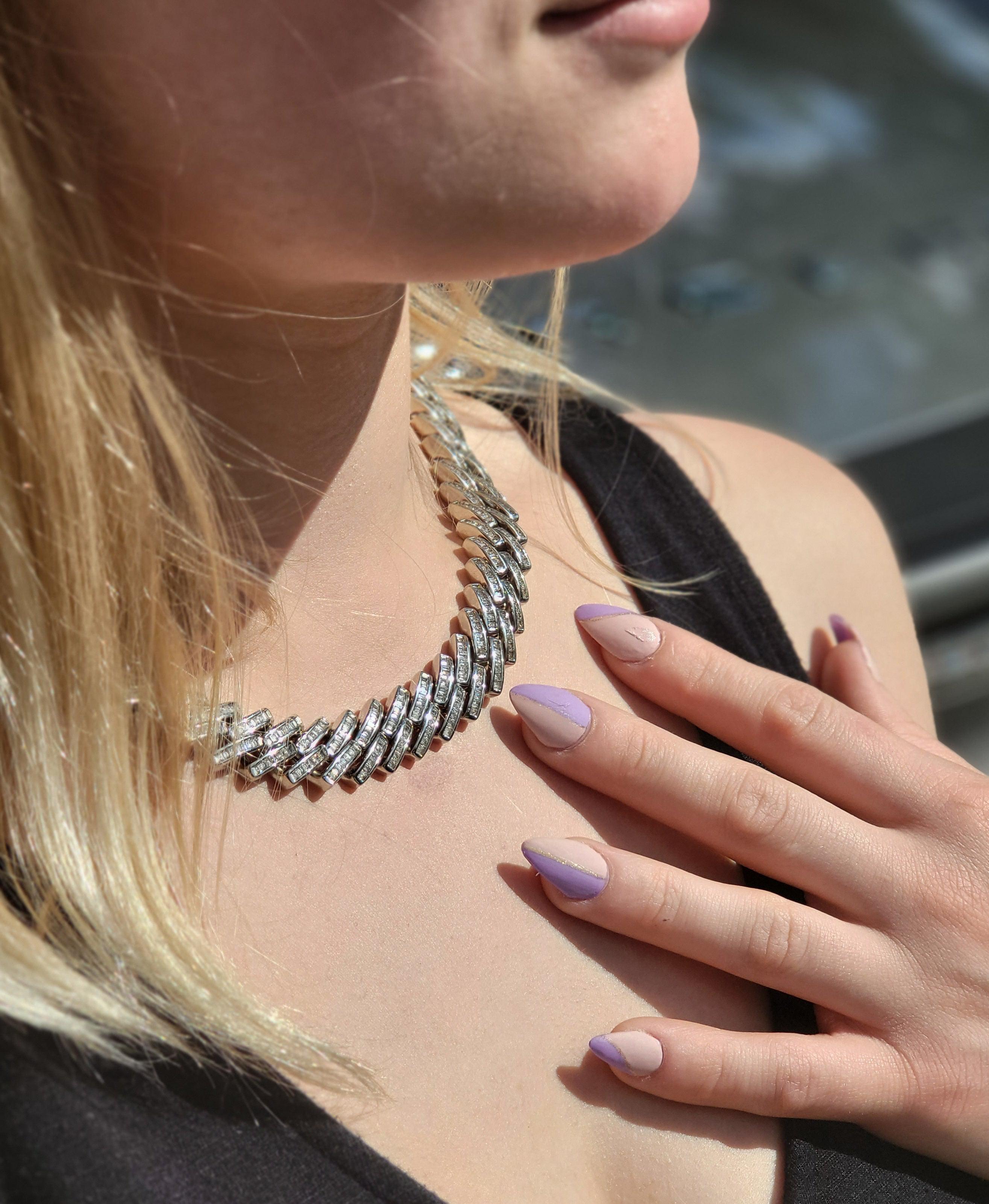 The Baguette Straight Edge Cuban Necklace will have you looking like you're at the top of the charts. This piece goes perfectly with any outfit!