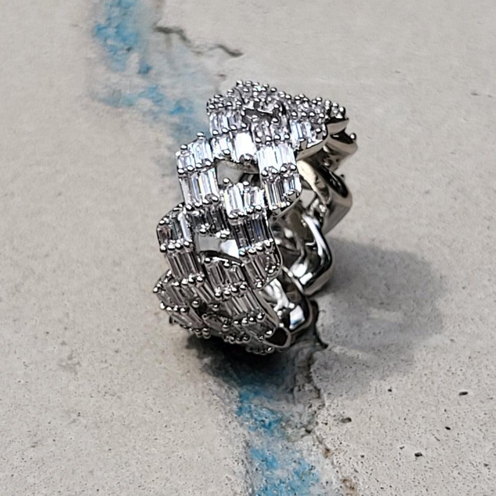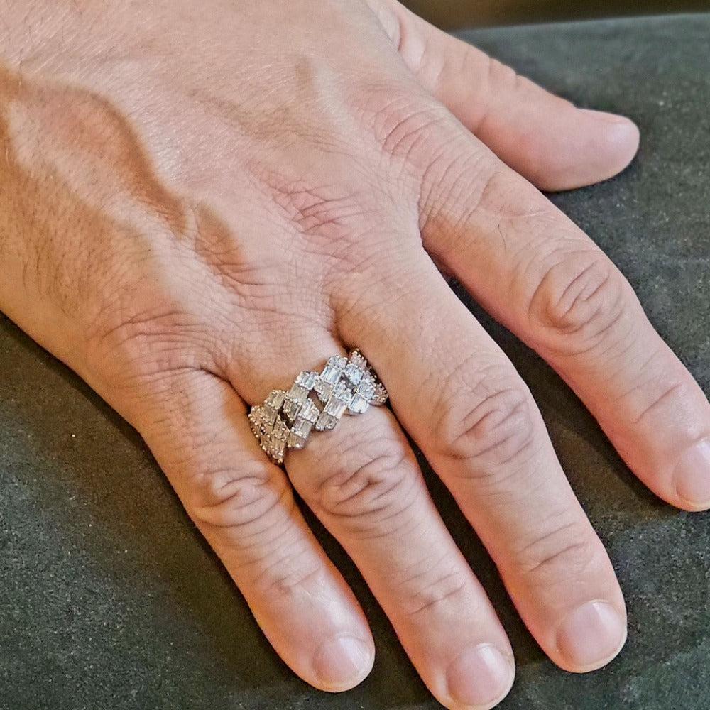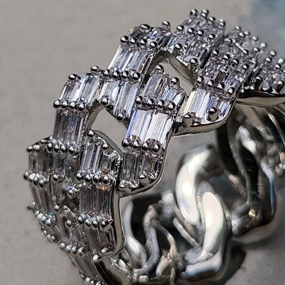 The Premium Iced Baggett Cuban Ring is stunning and the perfect accessory to any outfit, casual or business, this ring will turn heads in just the right way