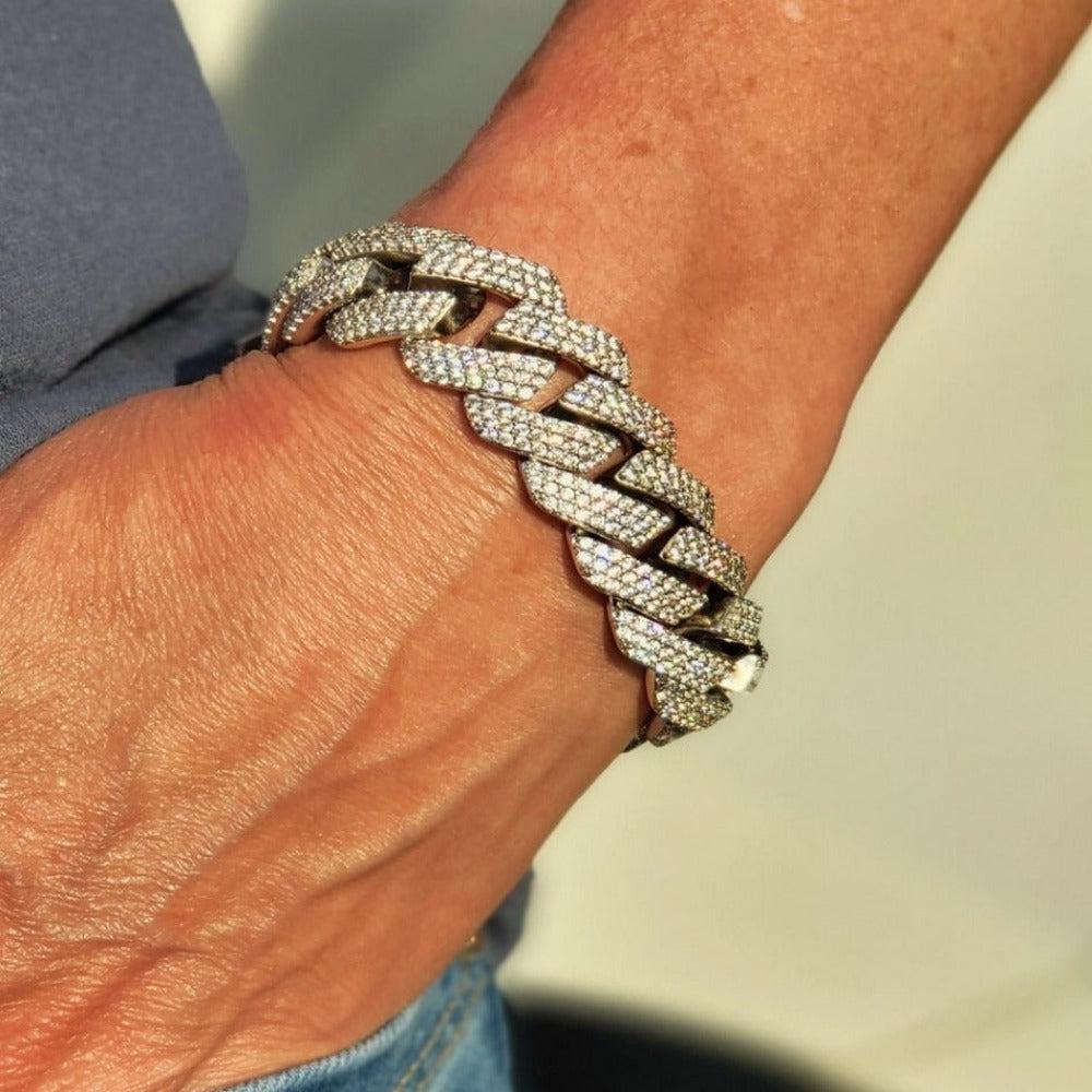The perfect Icy Bracelet is here! The 18K Premium Iced Straight Edge Cuban Bracelet will have you looking like you're at the top of the charts! This piece goes perfectly with any outfit